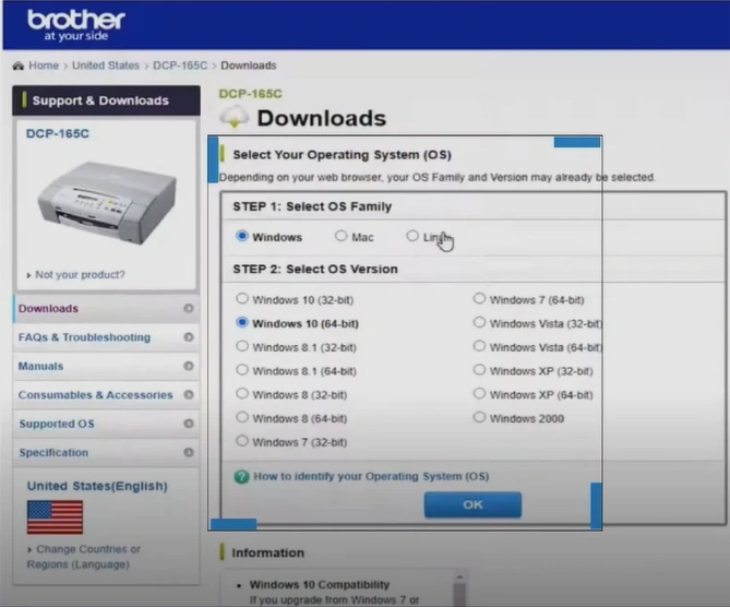 8. Check the operating system and select the one on your device.