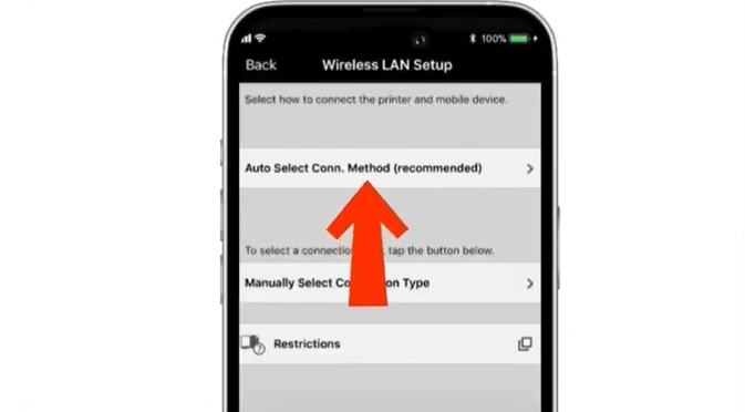 Step 15: On the wireless LAN setup page, select “Auto Select Conn.Method.”