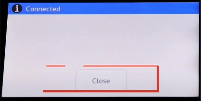 9. Once connected, tap Close on the printer display.