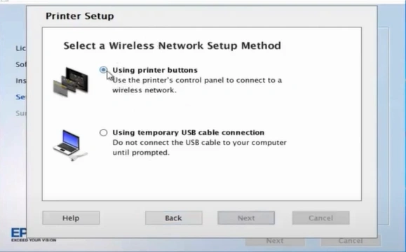 17. Next, select a wireless network setup method, then click Next.