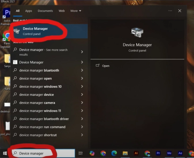 1. First, search for the device manager in the search bar and open it.