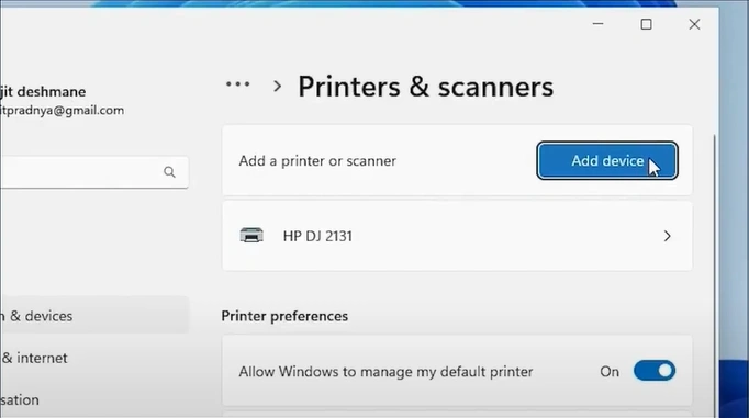 20. Next to "Add a printer or scanner," click on the Add device button.