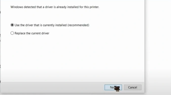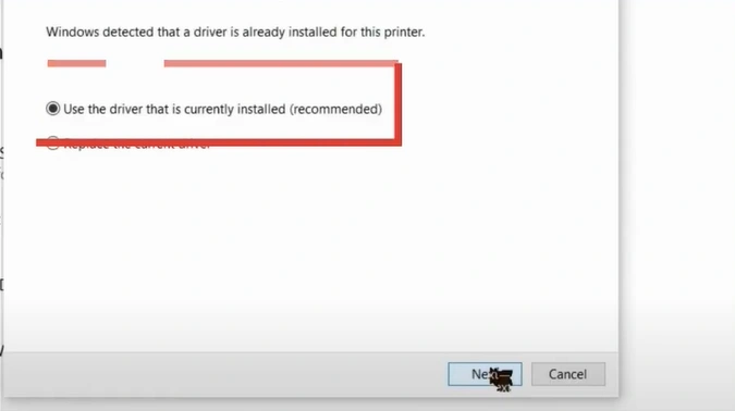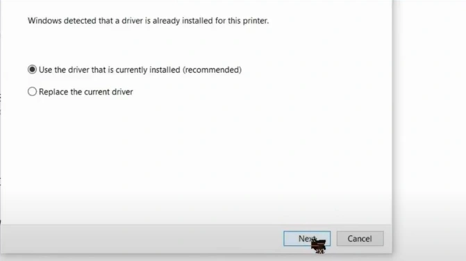 18. Select the "Use the driver that is currently installed" option.