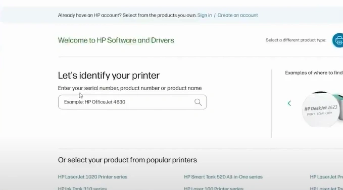 11. Enter the full name of your HP printer model in the search field and click Submit.