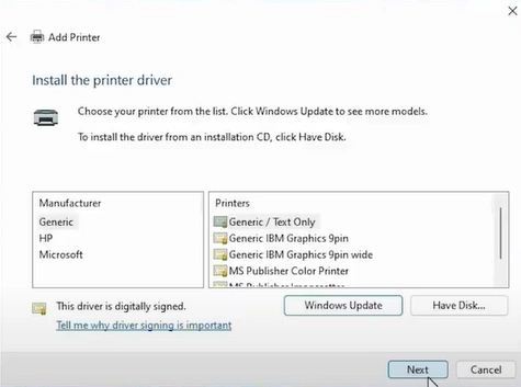 24. In the Add Printer window, click on the "Have Disk" button.