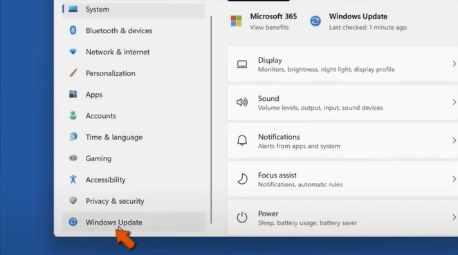 3. Click on Windows Update.