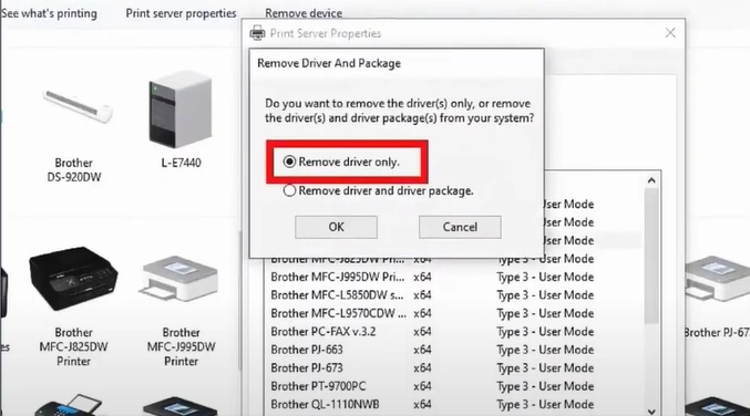 8. Select Remove Drivers Only, then click on OK.
