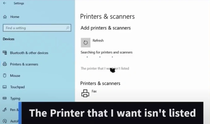 10. Click on "The printer that I want isn't listed."