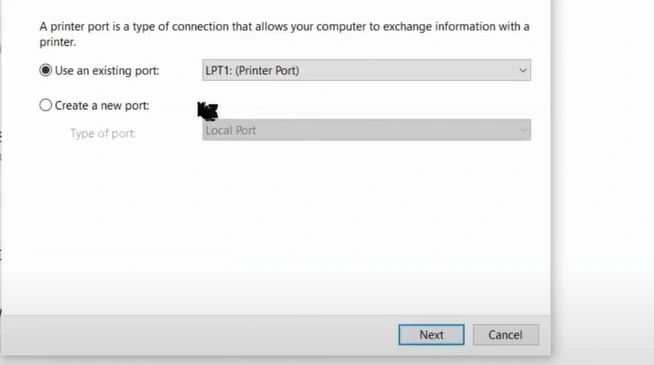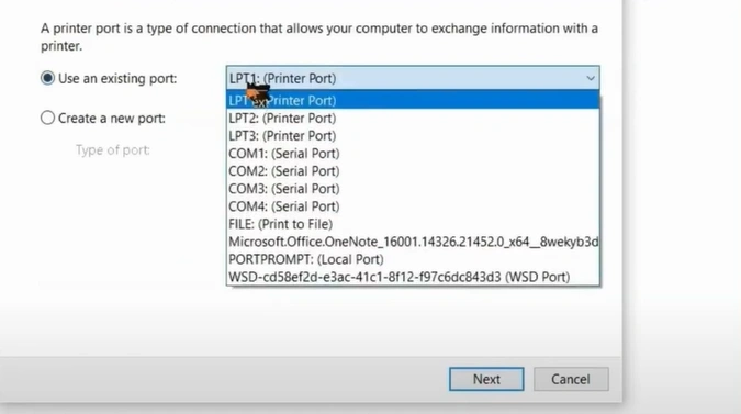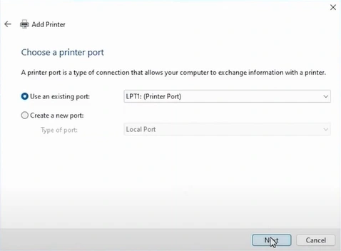 14. Select "LPT1" from the list of ports.