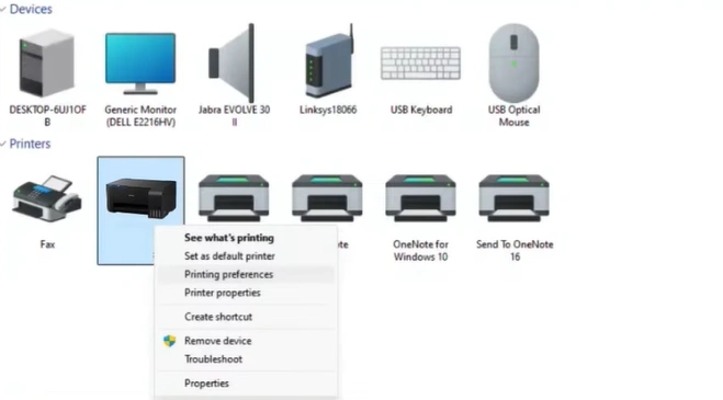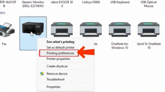 Right-click on “Epson L3110” and select “Printing Preferences.”