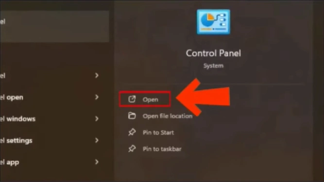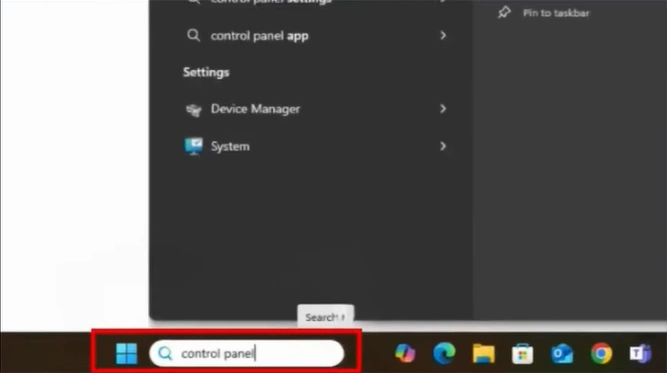 Step 2: In the search bar, type “Control Panel.”