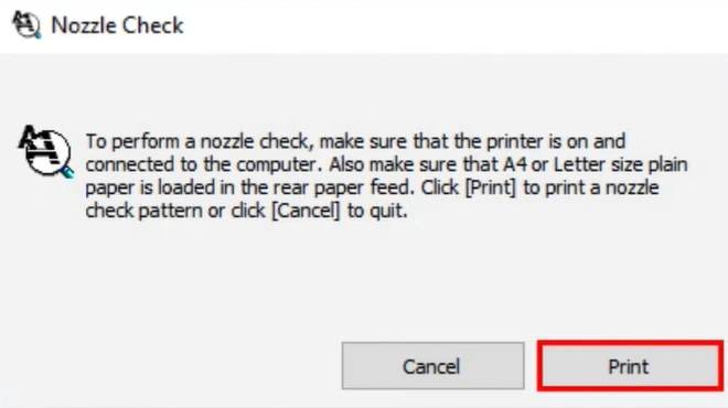 - Do a nozzle check: Go to the printer’s maintenance settings, and run a nozzle check to see if the black ink lines appear faded or broken.