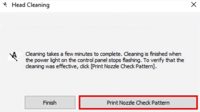 Step 13: Once the cleaning cycle is finished, press the “Print Nozzle Check Pattern” button.