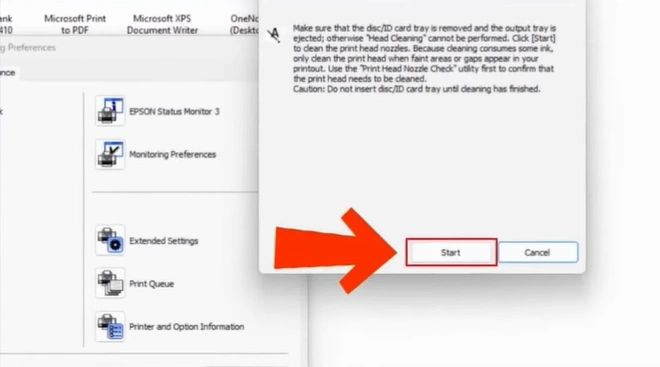Step 11: Press the “Start” button and wait for your printer to finish the first cleaning cycle.