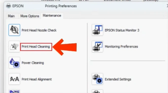 Step 10: Select “Print Head Cleaning” to start the cleaning process.