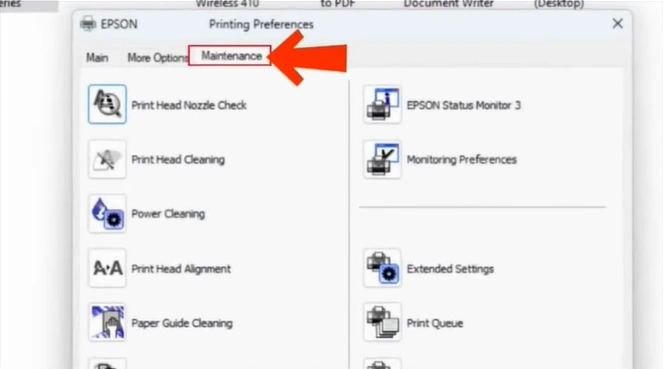 Step 9: Now, on the Printer preferences pop-up window, go to the Maintenance tab.