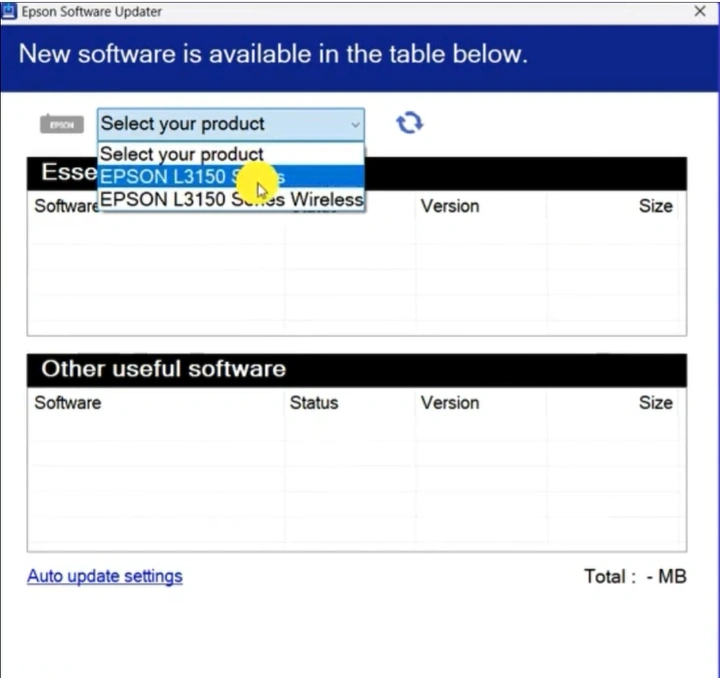 9. In the Epson Software Update window, select your product.