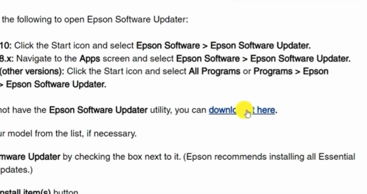 4. Scroll down and click on "Download it here" in the Epson software updater.