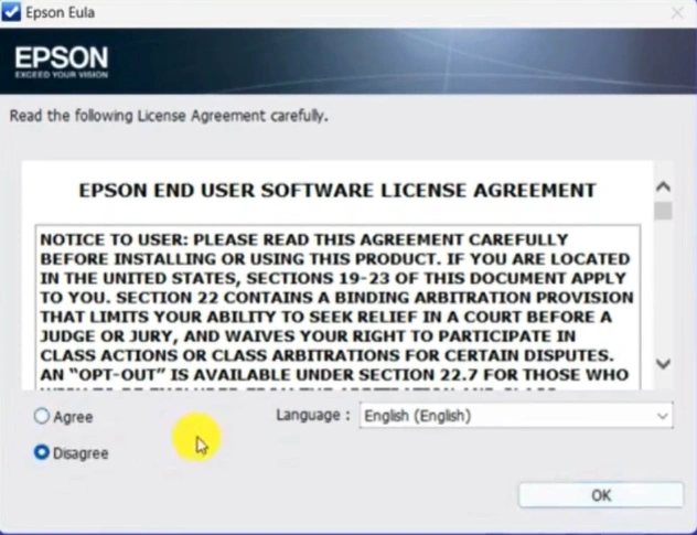 8. Select the Agree option, then click OK.