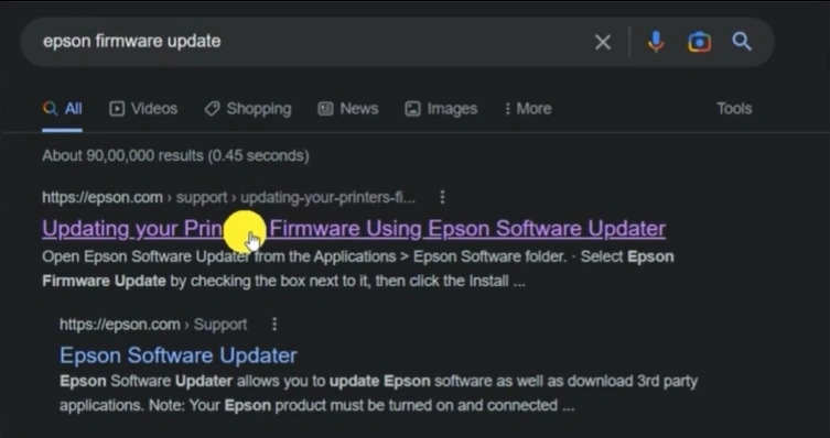 3. Now, open your browser and go to the official website for the Epson printer firmware update.