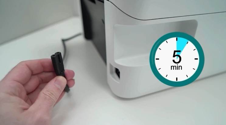4. After 5 minutes, plug the power cable back in.