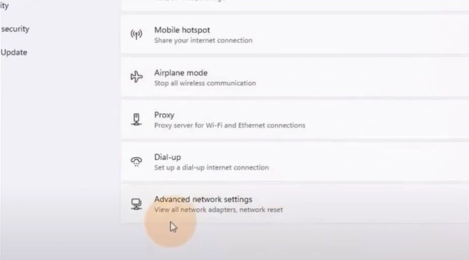 4. Go to Advanced Network settings.