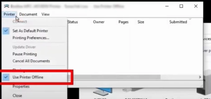 If the ‘Use printer offline’ option is selected for your Brother MFC-J1205W, then it can show some problems in printing documents. These are the steps to check the printer status and make changes if necessary.