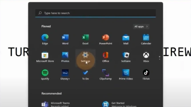 2. Click on the Start menu and open Settings.