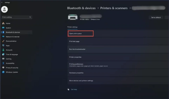 3. Click the "Open Print Queue" option.