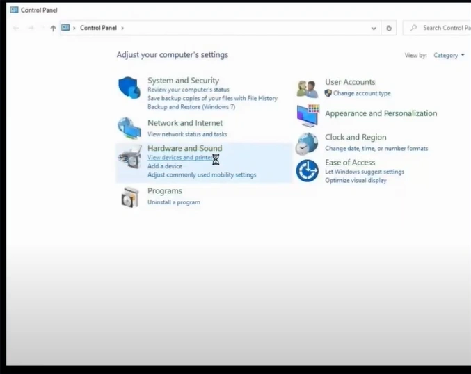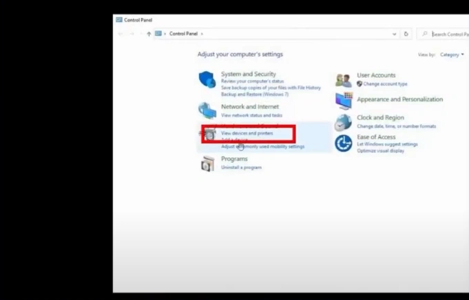 2. Click on the View Devices and Printers option.