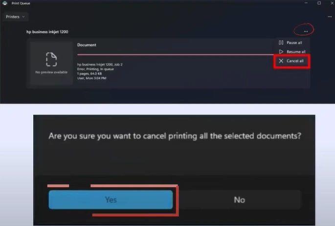 4. Select the three dots, then select the "Cancel All" option and click "Yes".
