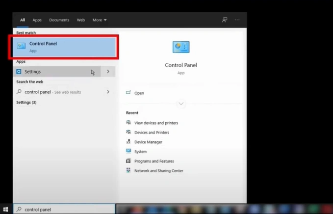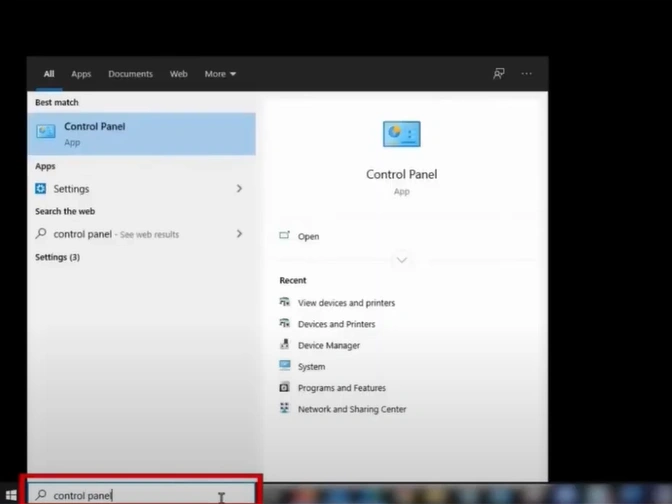 1. First, open the Control Panel window.