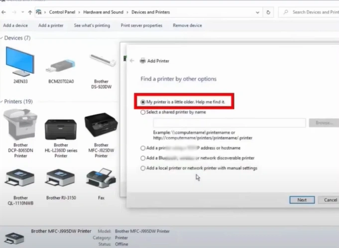 12. Select the “My printer is a little older. Help me find it” option, then click Next.