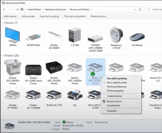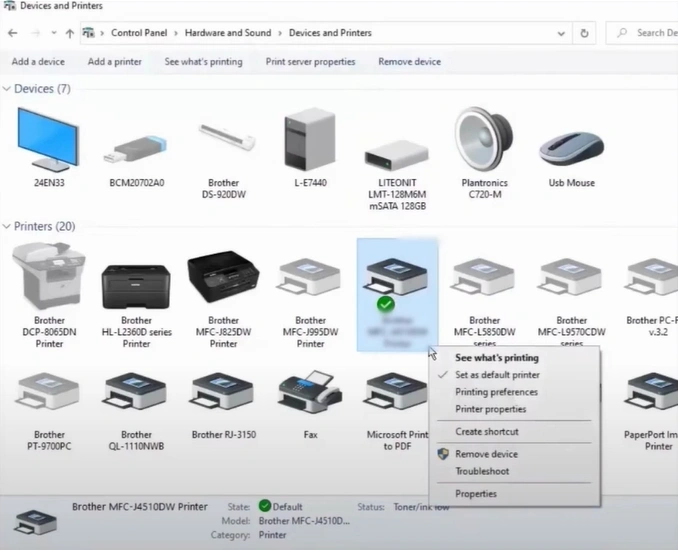 Not selecting your Brother printer as your default device is also important to fix the offline problem. Here is how you can easily set it as the default.
