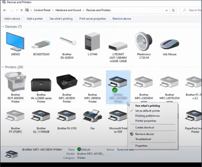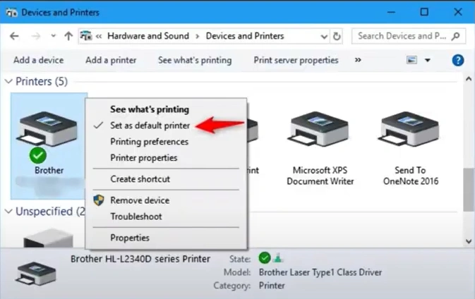 3. Now, right-click on your Brother printer and select the "Set as Default Printer" option.