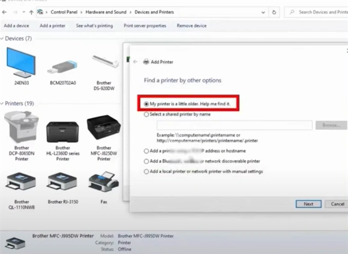 12. Choose the "My printer is a little older. Help me find it" option, then click Next.