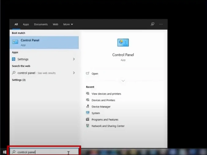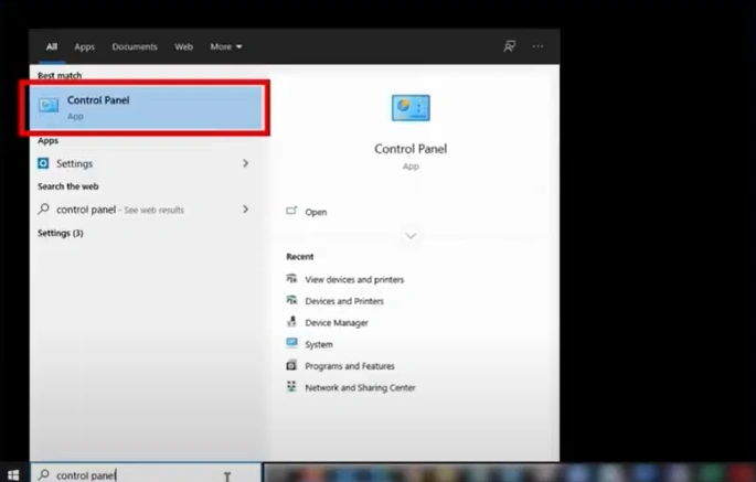 1. First, open the Control Panel.