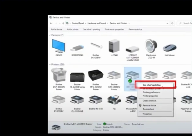 2. Next, you need to right-click on your printer device and click See what's printing.