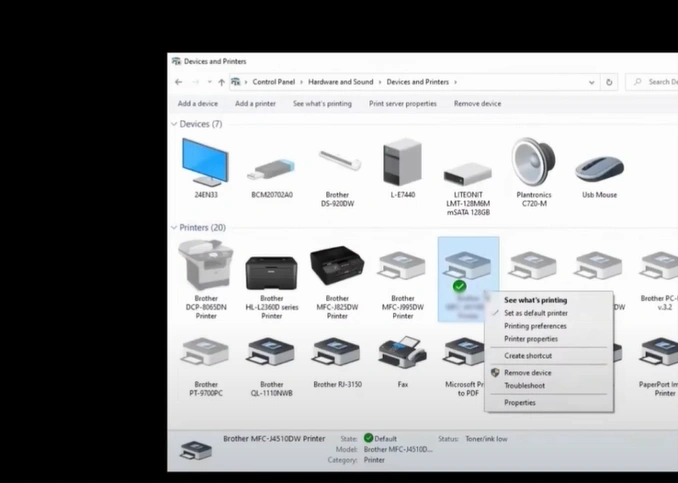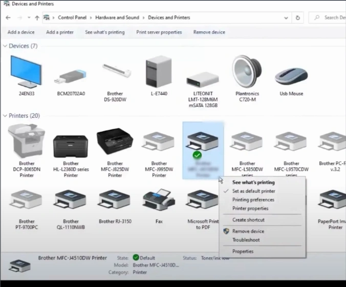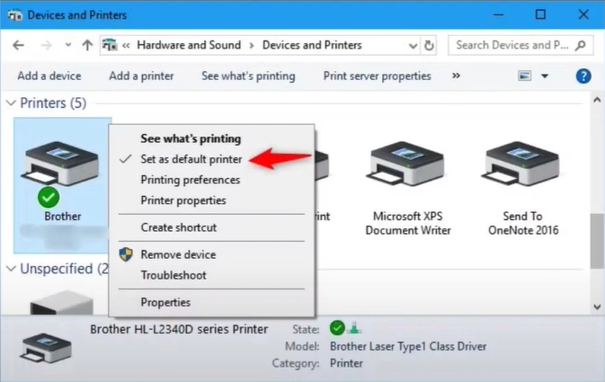 3. Right-click on your Brother printer and select the "Set as default printer" option.