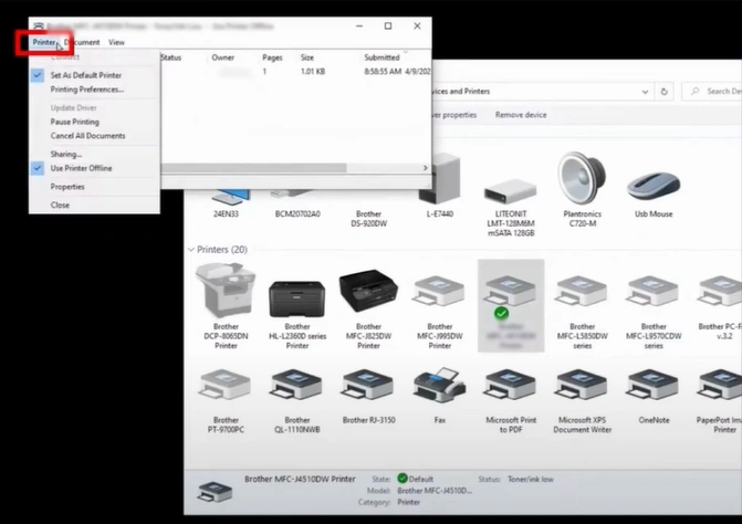 5. Check if the printer is out of the offline state or move to the next solution.