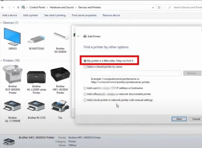 12. Choose the "My printer is a little older. Help me find it" option, then click Next.