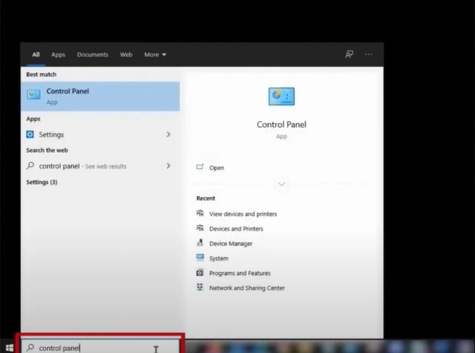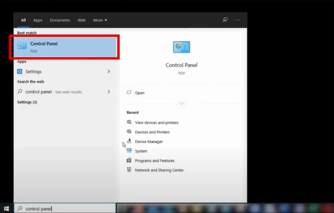 1. First, open the control panel.