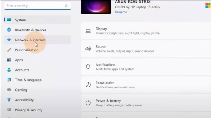 2. Open the Network & Internet settings.