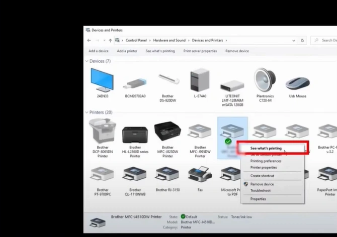 2. Next, you need to right-click on your printer device and click See what's printing.