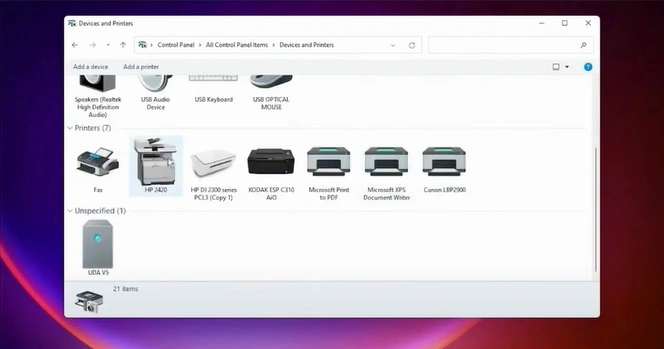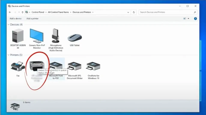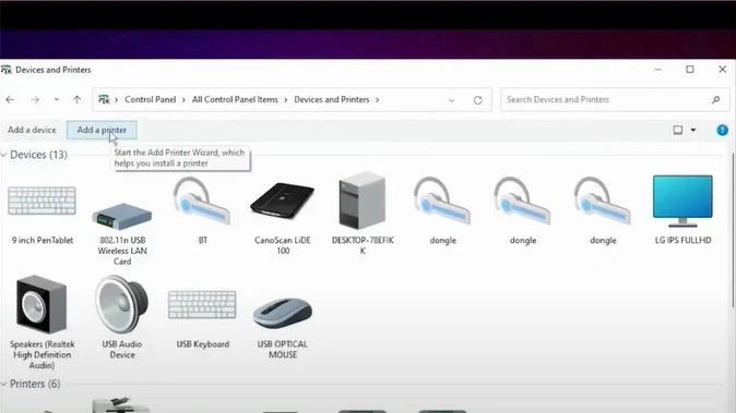 4. In the Devices and Printers window, look for your Canon printer.
