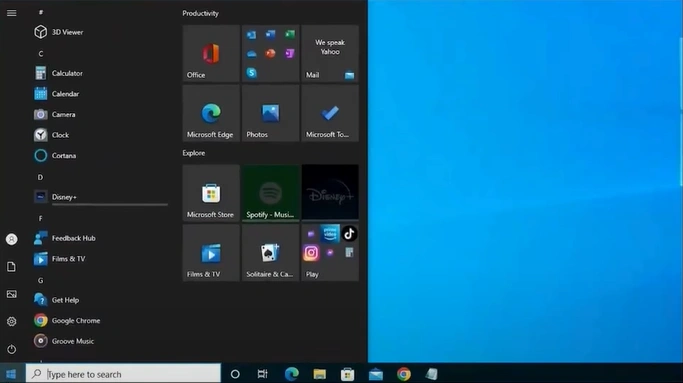 5. Next, click on the Start menu option.