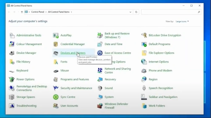 25. Next, you need to open your control panel and click on Devices and Printers.