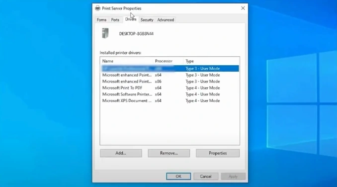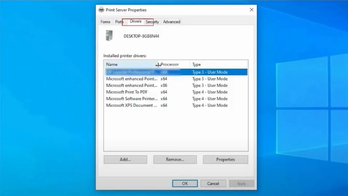 9. The Printer Server Properties will open.