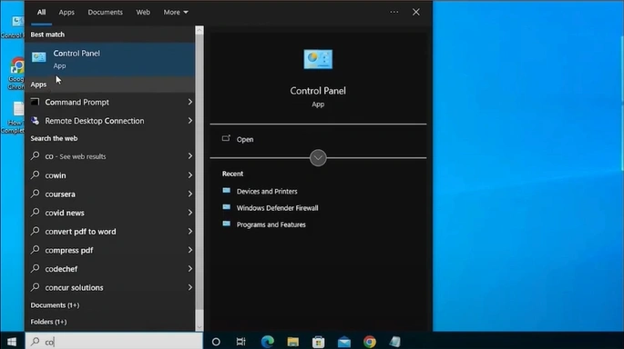 2. Search and open the Control Panel.