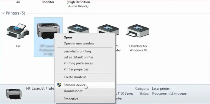 5. You should right-click on your printer and choose Remove Device.